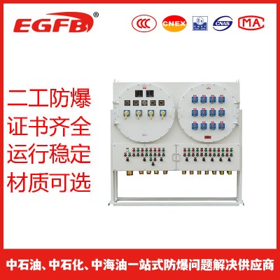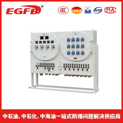 通过将多个防爆电磁起动器或电磁起动箱和防爆断路器、操作柱和防爆接线箱等组合,可在电压380V的三相交流50Hz的配电系统中实现动力配送及电动机的集中控制,支路最大可达160A,可根据用户要求实现远距离控制,并可根据要求装信号灯、电压表、电流表等监控装置;